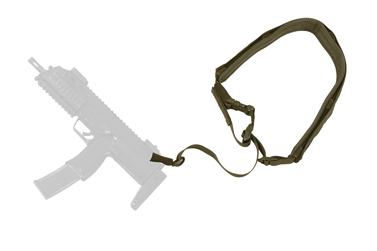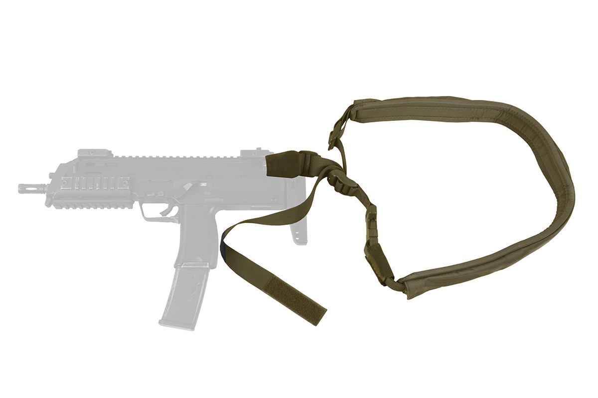 Позволяет отпустить оружие на вытянутую левую руку для стрельбы со слабого плеча, перемещения ползком или выполнения иных задач. Или притянуть плотно и освободить руки.