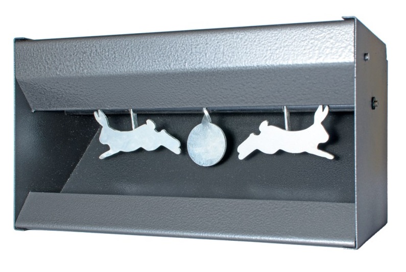 Минитир "Зайцы" представляет собой набор из трёх металлических медальонов, встроенных в корпус пулеулавливателя, с механизмом, который обеспечивает дистанционный сброс и восстановление исходного положения мишеней.