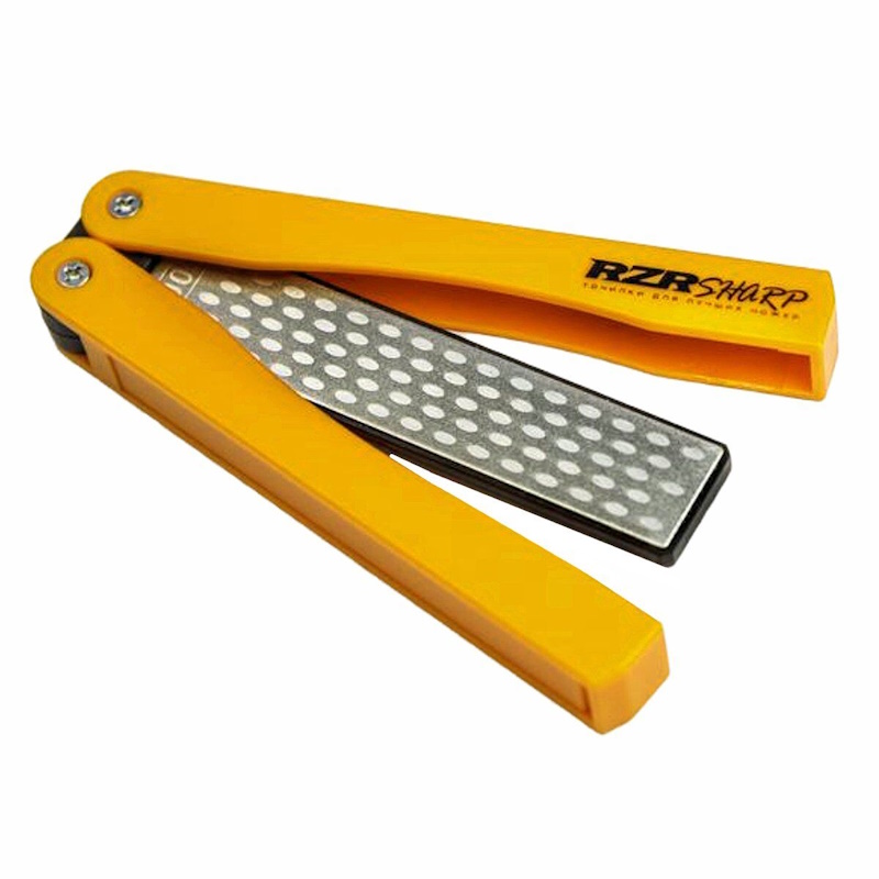 Карманная точилка RZR-13D имеет удобную складывающуюся конструкцию в стиле ножа-бабочки, которая предохраняет абразив от загрязнения при транспортировке и хранении. Рукояти изготовлены из специального прочного пластика ABS. Длина рабочей поверхности 102 мм