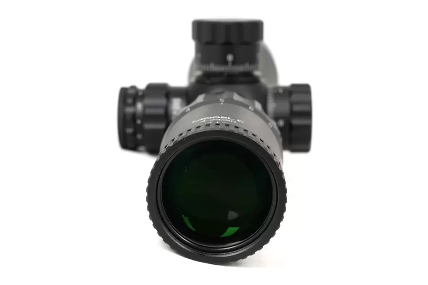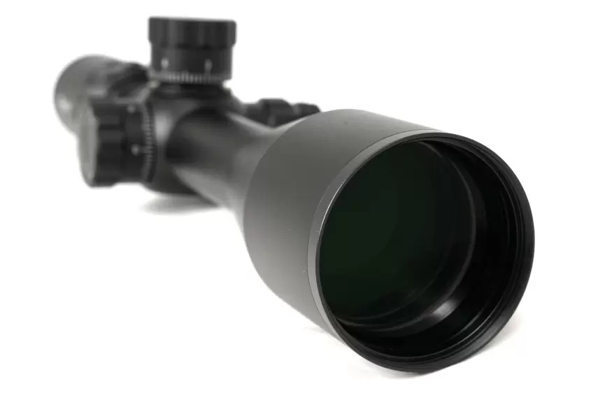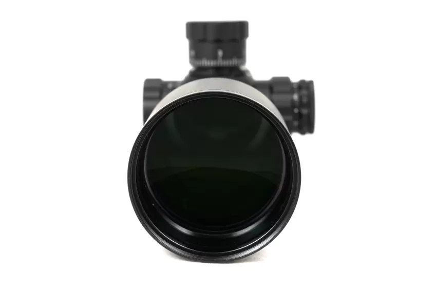 Качественная оптика с фирменным просветлением FMC предоставляет предельно четкое и контрастное изображение цели даже на максимальной кратности. Светосильный объектив 50 мм позволяет эффективно применять прицел даже при слабом сумеречном освещении. Оптического увеличения в пределах от 4 до 24 крат вполне достаточно для комфортной работы по малогабаритным целям на средних и дальних дистанциях. Угол пространственного поля зрения на минимальной кратности равен 2,55°, что обеспечивает видимость области пространства шириной 45 метров на отдалении в один километр. Удаление выходного зрачка находится на безопасном расстоянии (108 - 88 мм) для стрельбы крупным калибром.