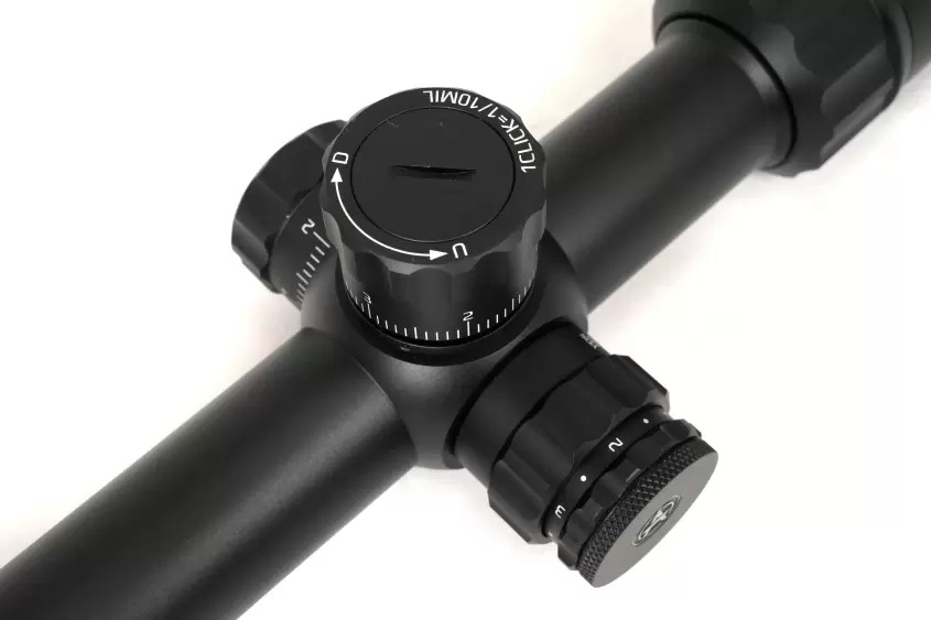 Для внесения изменений в положение прицельной сетки прицел оснащен тактическими турелями ввода поправок с ценой клика 0,1 MRAD. Также имеются функции обнуления и быстрого возврата к нулю ZeroStop. Запас хода прицельной сетки на дальность и силу ветра составляет 17,5 MIL.