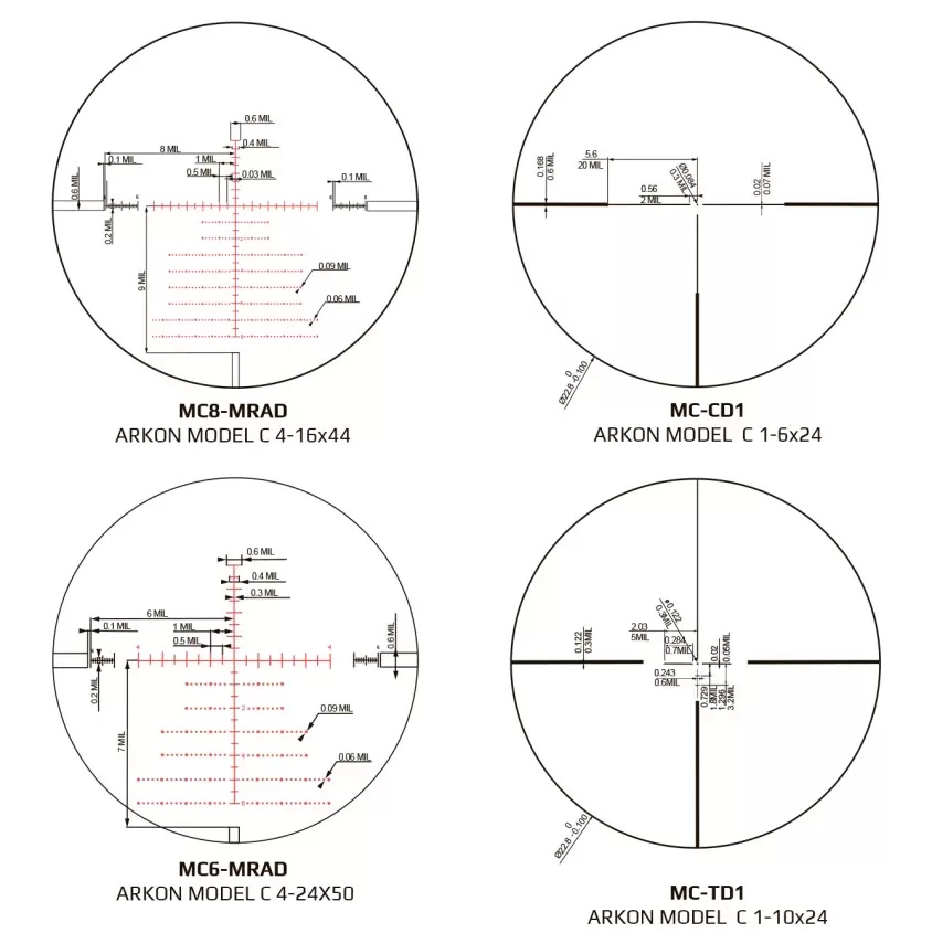 Оптический прицел Arkon Model C 4-24x50 имеет следующие характеристики: