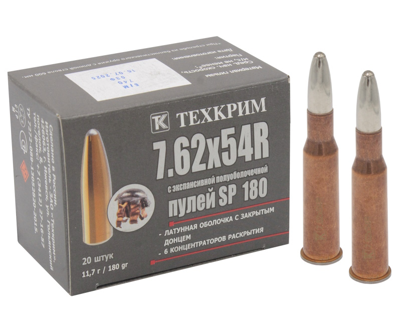 Патрон 7,62х54 SP 180 от «Техкрим» отличается тщательно выверенными техническими характеристиками. Масса пули составляет 11,7 грамм (180гран), что обеспечивает оптимальный баланс между настильностью траектории и передачей энергии. Стальная фосфатированная гильза гарантирует надежную экстракцию и стабильность при выстреле. Начальная скорость пули составляет 740 м/с, а кучность на дистанции 100 метров – всего 30 мм, что свидетельствует о высокой точности и стабильности данного патрона.